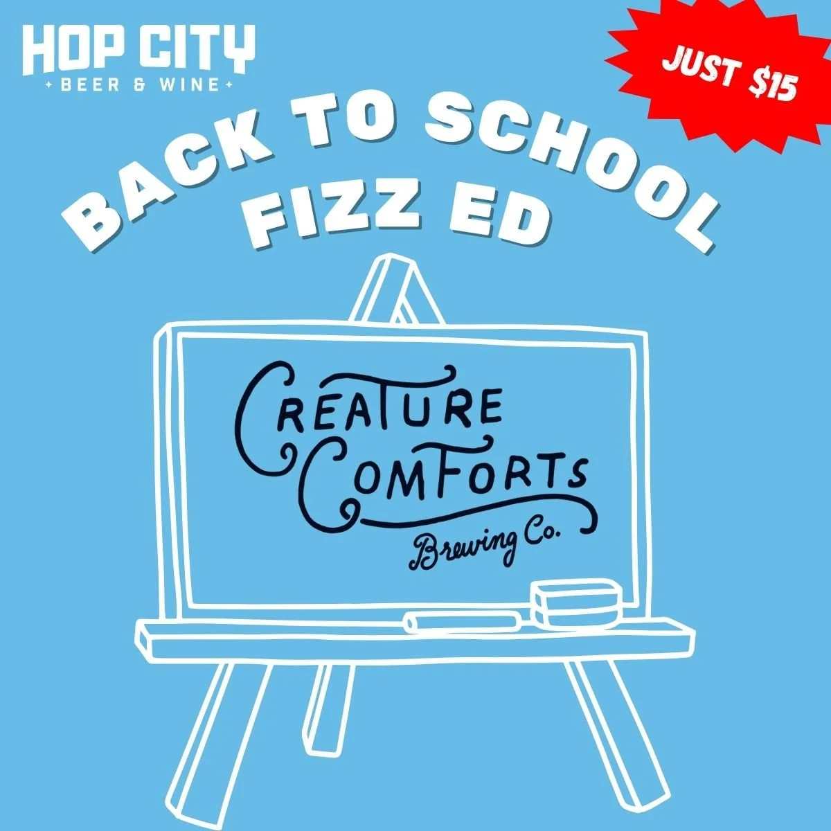 Our August Back to School edition of Fizz Ed features our beloved friends from Creature Comforts! For only $15, you'll get schooled on some of their best brews. Join us for a fun filled evening!